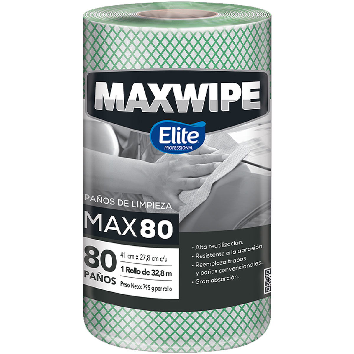 Paños de limpieza maxwipe rollo x 80 paños verde = cod.5694